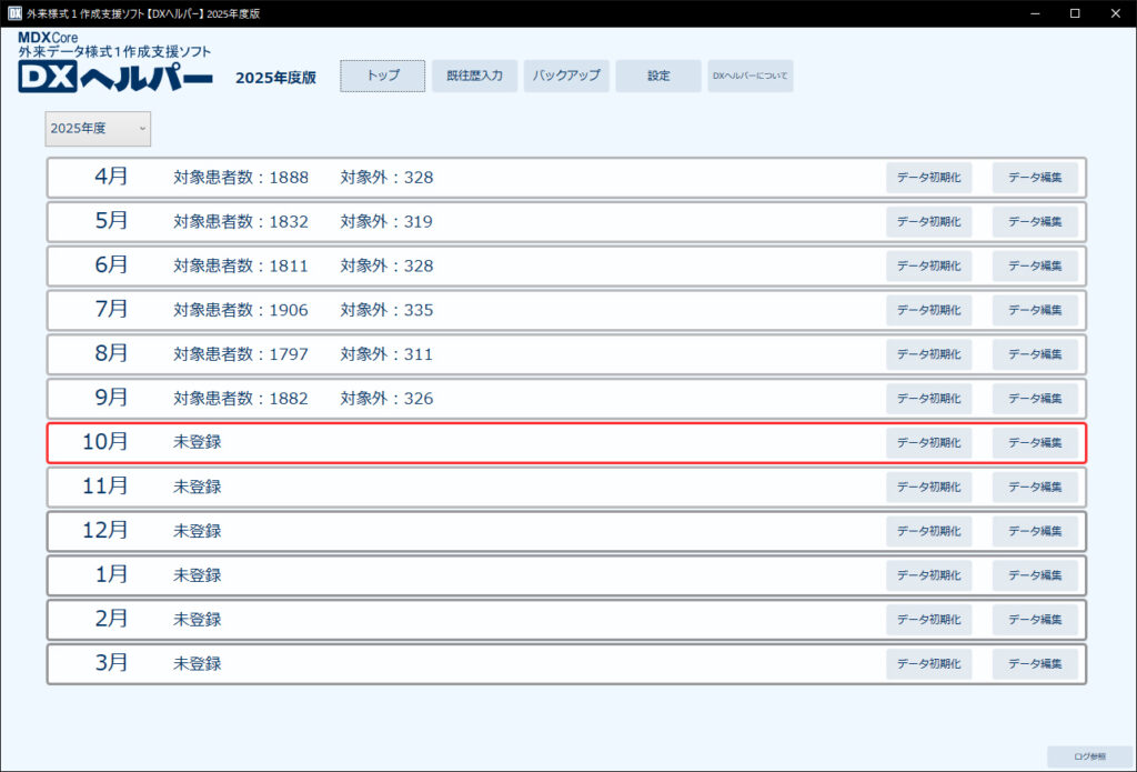 ここでは「2025年10月」のデータを作成します。10月の「データ編集」をクリックします。