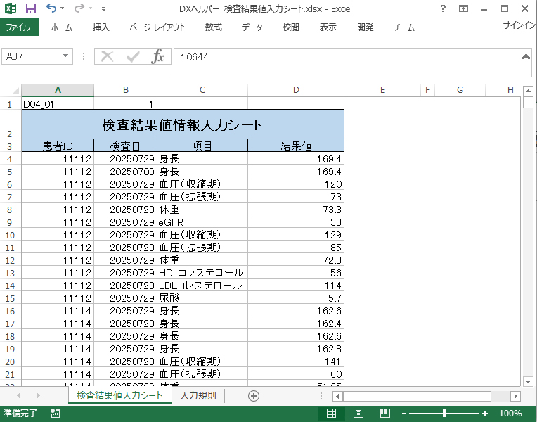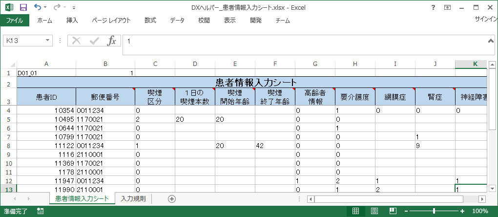 DXヘルパーでは専用エクセルシートが用意されていますので、問診情報などは日々情報を管理しておけば、専用エクセルシート取り込むだけで必要な情報が補間されます。